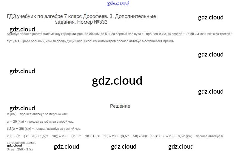 Ответ на задание 333 Учебник Алгебра за 7 (седьмой) класс Дорофеев, Суворова, Бунимович Академический школьный учебник 2020