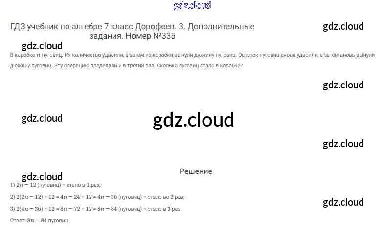 Ответ на задание 335 Учебник Алгебра за 7 (седьмой) класс Дорофеев, Суворова, Бунимович Академический школьный учебник 2020