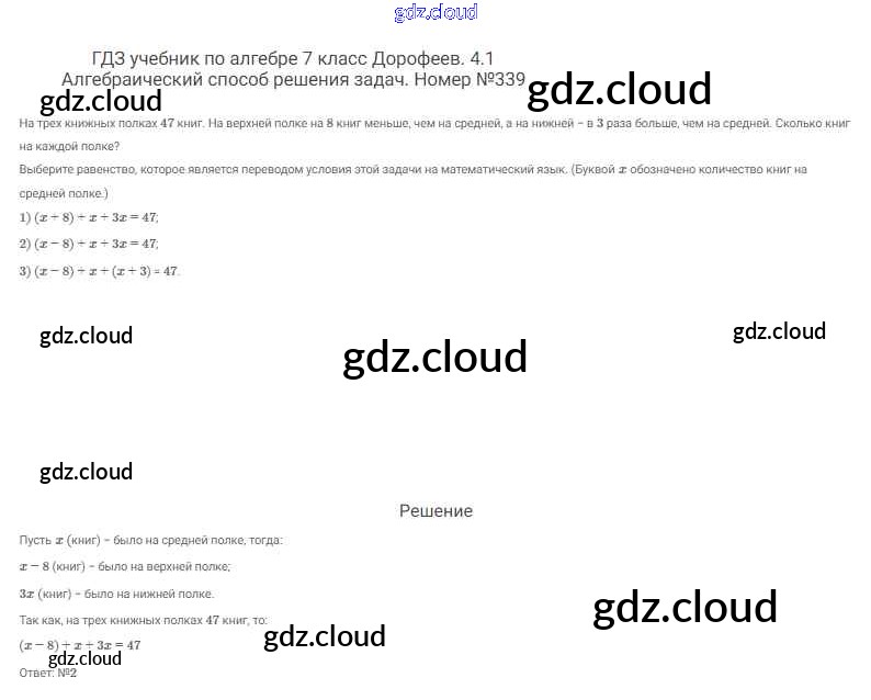 Ответ на задание 339 Учебник Алгебра  за 7 (седьмой) класс Дорофеев, Суворова, Бунимович Академический школьный учебник  2020