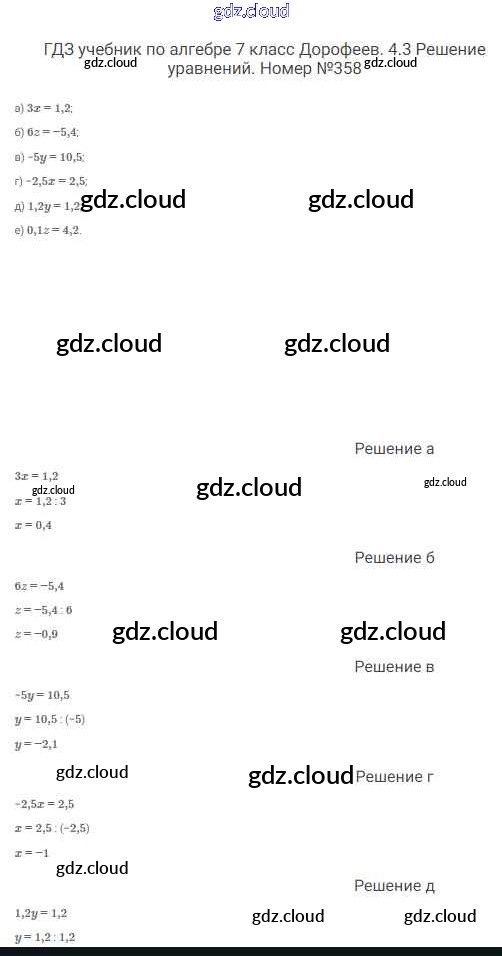 Ответ на задание 358 Учебник Алгебра  за 7 (седьмой) класс Дорофеев, Суворова, Бунимович Академический школьный учебник  2020