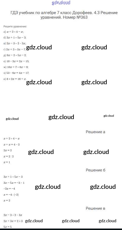 Ответ на задание 363 Учебник Алгебра  за 7 (седьмой) класс Дорофеев, Суворова, Бунимович Академический школьный учебник  2020