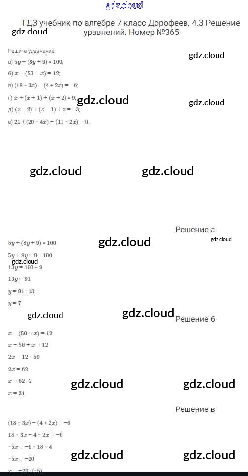 Ответ на задание 365 Учебник Алгебра  за 7 (седьмой) класс Дорофеев, Суворова, Бунимович Академический школьный учебник  2020