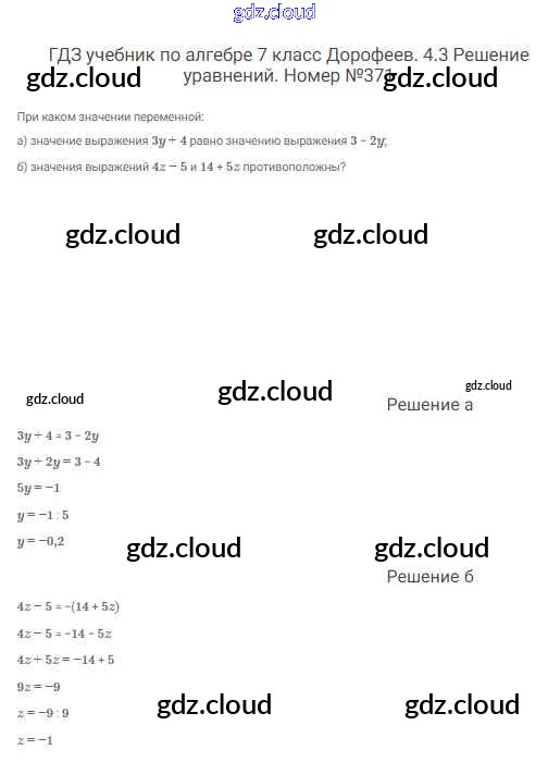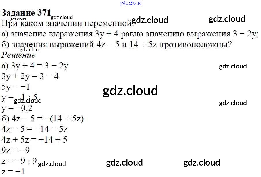 Ответ на задание 371 Учебник Алгебра  за 7 (седьмой) класс Дорофеев, Суворова, Бунимович Академический школьный учебник  2020