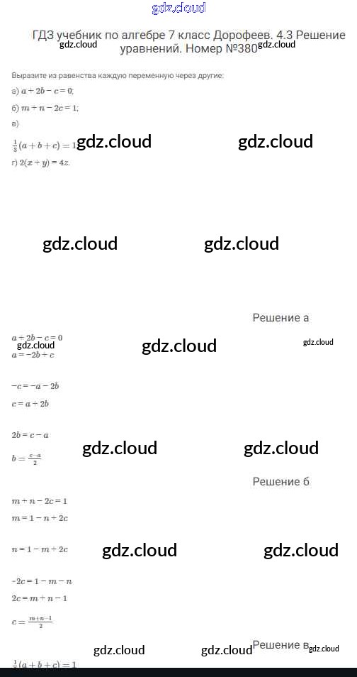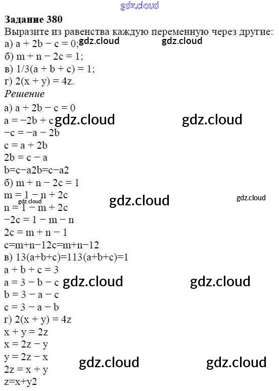 Ответ на задание 380 Учебник Алгебра за 7 (седьмой) класс Дорофеев, Суворова, Бунимович Академический школьный учебник 2020
