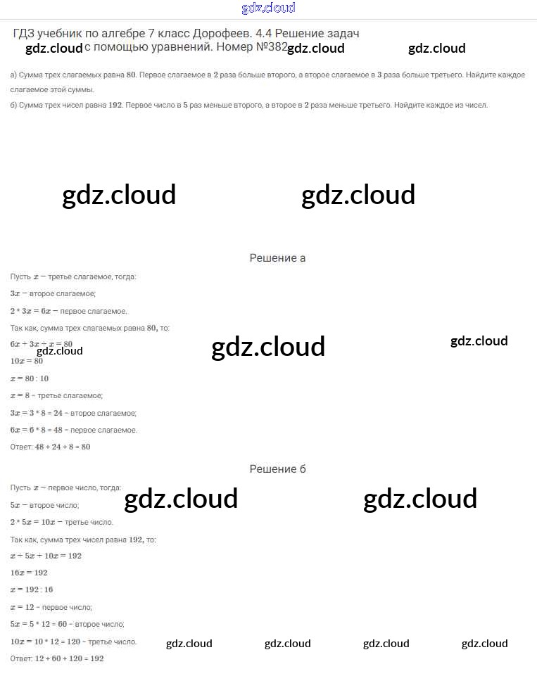 Ответ на задание 382 Учебник Алгебра  за 7 (седьмой) класс Дорофеев, Суворова, Бунимович Академический школьный учебник  2020