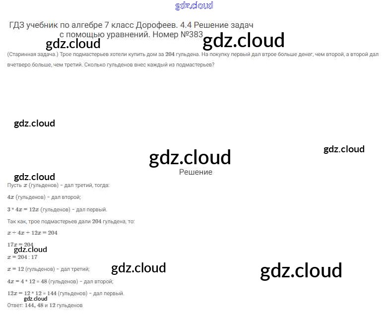 Ответ на задание 383 Учебник Алгебра  за 7 (седьмой) класс Дорофеев, Суворова, Бунимович Академический школьный учебник  2020