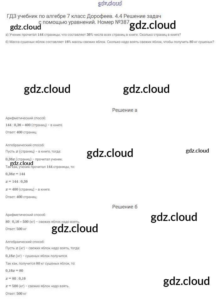 Ответ на задание 387 Учебник Алгебра  за 7 (седьмой) класс Дорофеев, Суворова, Бунимович Академический школьный учебник  2020