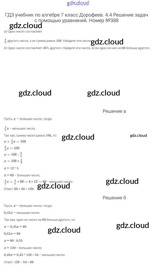 Ответ на задание 388 Учебник Алгебра  за 7 (седьмой) класс Дорофеев, Суворова, Бунимович Академический школьный учебник  2020