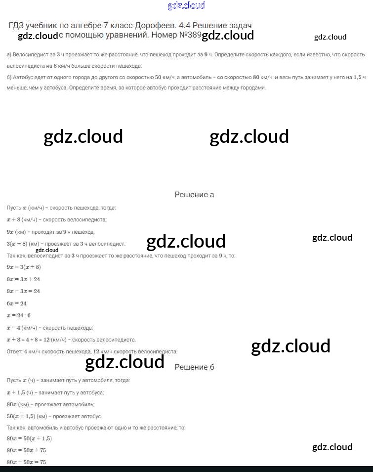 Ответ на задание 389 Учебник Алгебра за 7 (седьмой) класс Дорофеев, Суворова, Бунимович Академический школьный учебник 2020