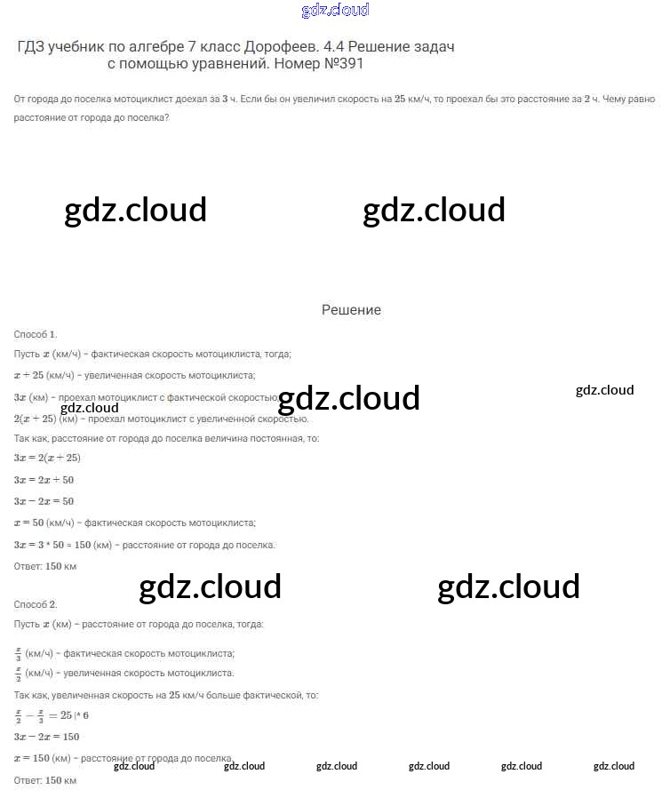 Ответ на задание 391 Учебник Алгебра  за 7 (седьмой) класс Дорофеев, Суворова, Бунимович Академический школьный учебник  2020