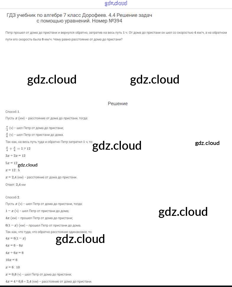 Ответ на задание 394 Учебник Алгебра  за 7 (седьмой) класс Дорофеев, Суворова, Бунимович Академический школьный учебник  2020
