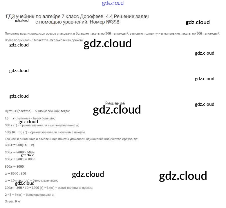 Ответ на задание 398 Учебник Алгебра  за 7 (седьмой) класс Дорофеев, Суворова, Бунимович Академический школьный учебник  2020