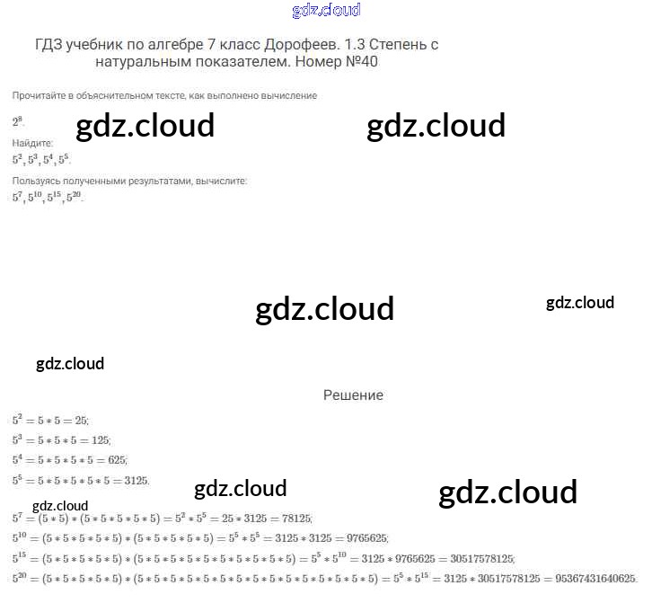 Ответ на задание 40 Учебник Алгебра  за 7 (седьмой) класс Дорофеев, Суворова, Бунимович Академический школьный учебник  2020