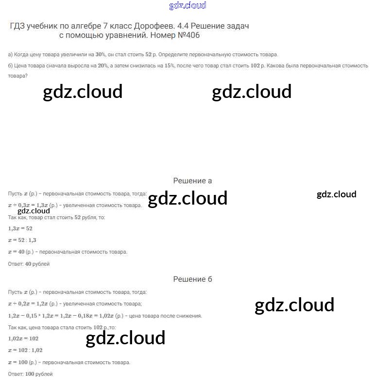 Ответ на задание 406 Учебник Алгебра  за 7 (седьмой) класс Дорофеев, Суворова, Бунимович Академический школьный учебник  2020