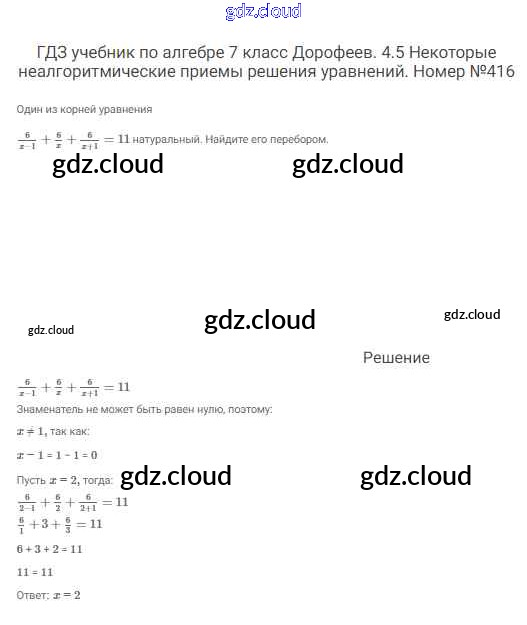 Ответ на задание 416 Учебник Алгебра за 7 (седьмой) класс Дорофеев, Суворова, Бунимович Академический школьный учебник 2020