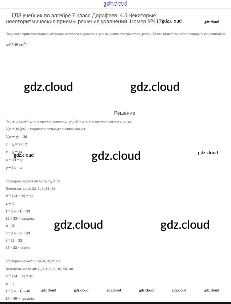 Ответ на задание 417 Учебник Алгебра  за 7 (седьмой) класс Дорофеев, Суворова, Бунимович Академический школьный учебник  2020