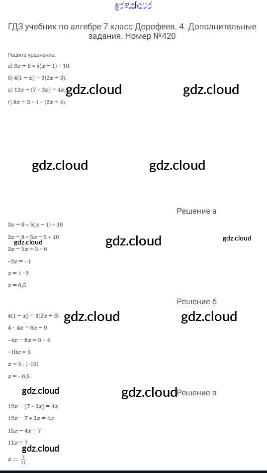 Ответ на задание 420 Учебник Алгебра  за 7 (седьмой) класс Дорофеев, Суворова, Бунимович Академический школьный учебник  2020