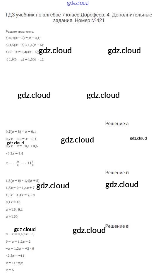 Ответ на задание 421 Учебник Алгебра  за 7 (седьмой) класс Дорофеев, Суворова, Бунимович Академический школьный учебник  2020