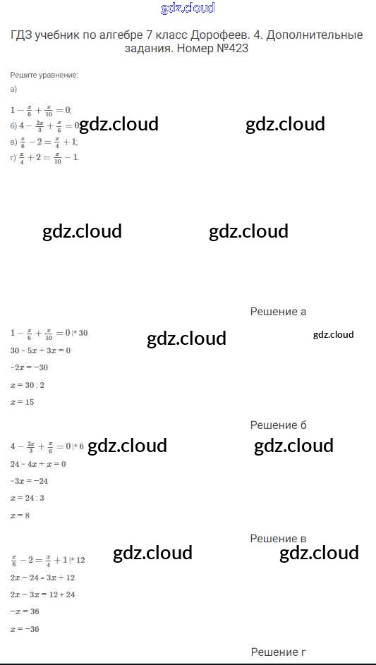 Ответ на задание 423 Учебник Алгебра  за 7 (седьмой) класс Дорофеев, Суворова, Бунимович Академический школьный учебник  2020