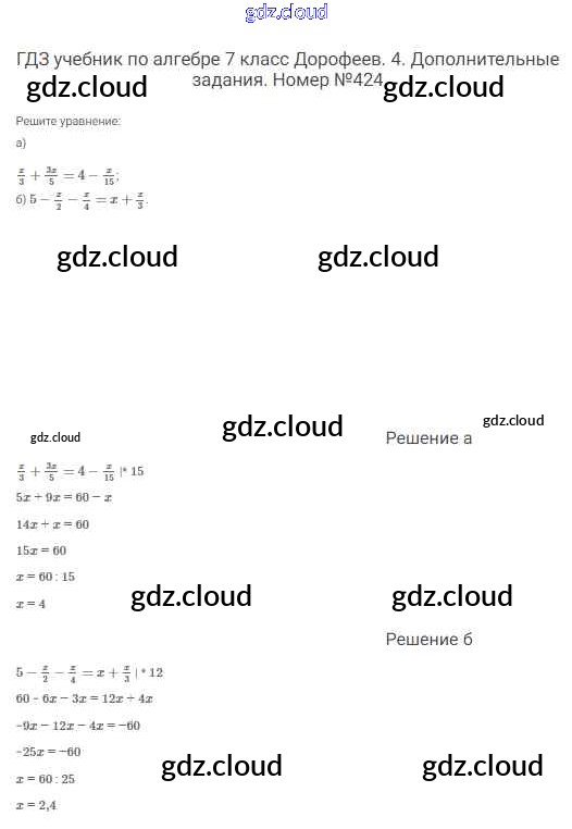 Ответ на задание 424 Учебник Алгебра за 7 (седьмой) класс Дорофеев, Суворова, Бунимович Академический школьный учебник 2020