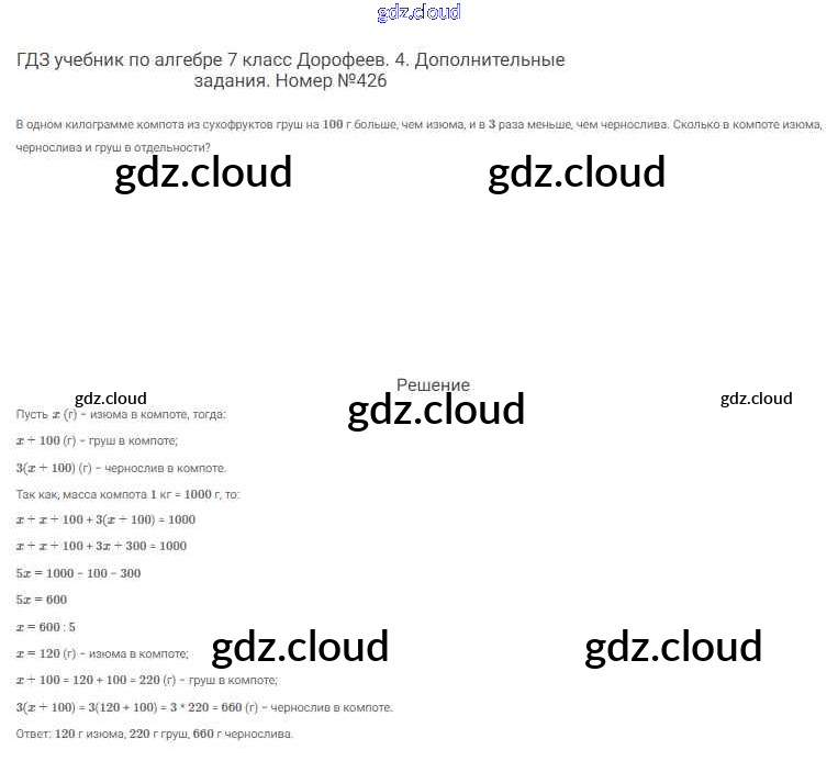 Ответ на задание 426 Учебник Алгебра  за 7 (седьмой) класс Дорофеев, Суворова, Бунимович Академический школьный учебник  2020