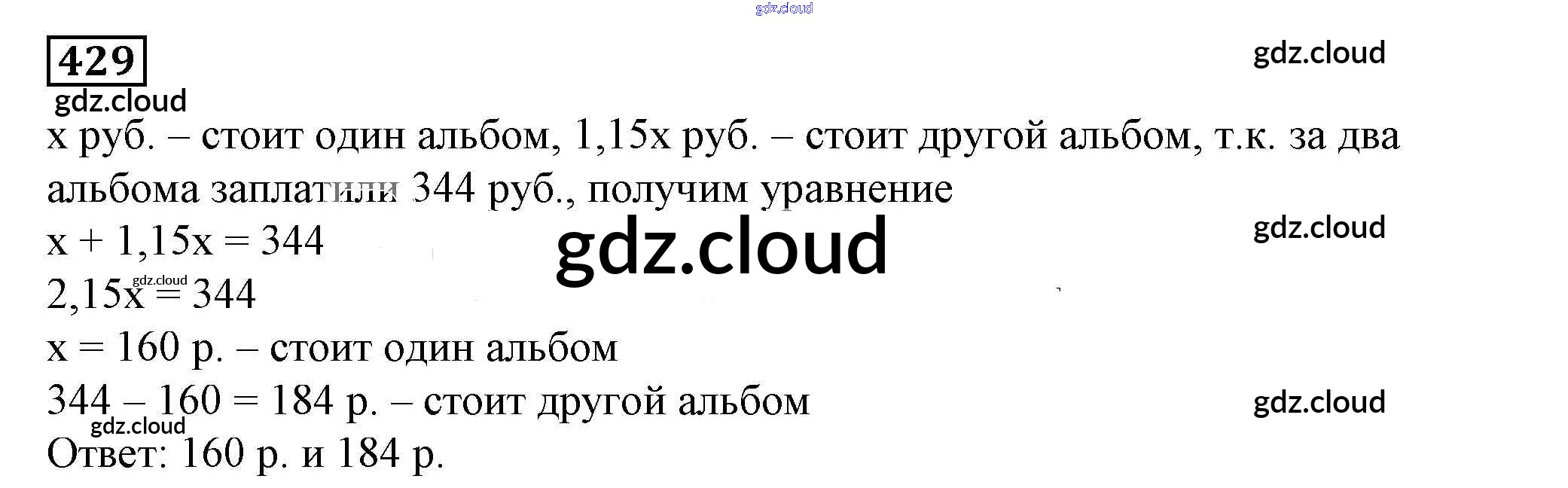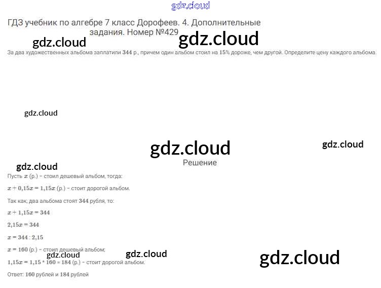 Ответ на задание 429 Учебник Алгебра  за 7 (седьмой) класс Дорофеев, Суворова, Бунимович Академический школьный учебник  2020