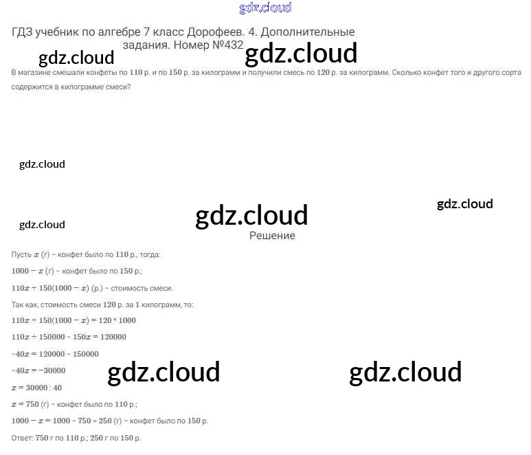 Ответ на задание 432 Учебник Алгебра  за 7 (седьмой) класс Дорофеев, Суворова, Бунимович Академический школьный учебник  2020