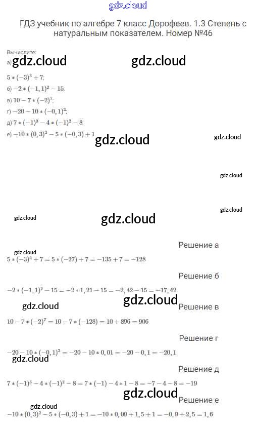 Ответ на задание 46 Учебник Алгебра  за 7 (седьмой) класс Дорофеев, Суворова, Бунимович Академический школьный учебник  2020