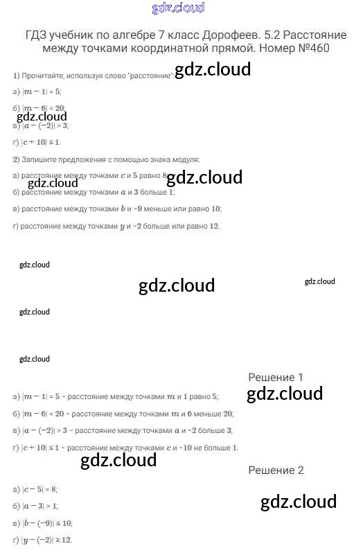 Ответ на задание 460 Учебник Алгебра  за 7 (седьмой) класс Дорофеев, Суворова, Бунимович Академический школьный учебник  2020