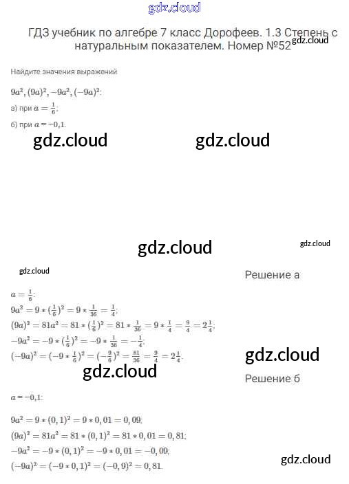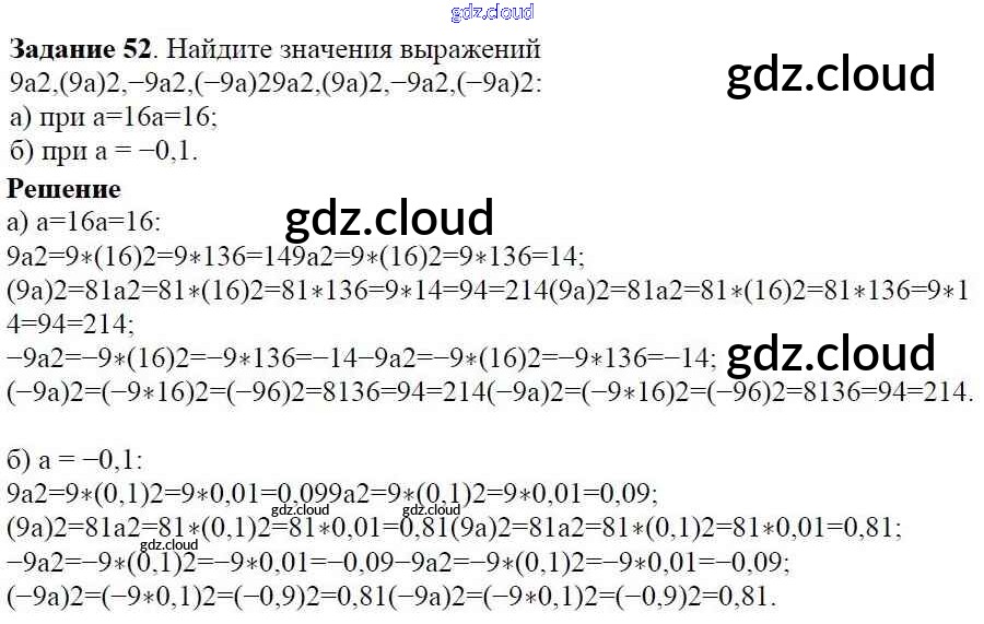 Ответ на задание 52 Учебник Алгебра  за 7 (седьмой) класс Дорофеев, Суворова, Бунимович Академический школьный учебник  2020