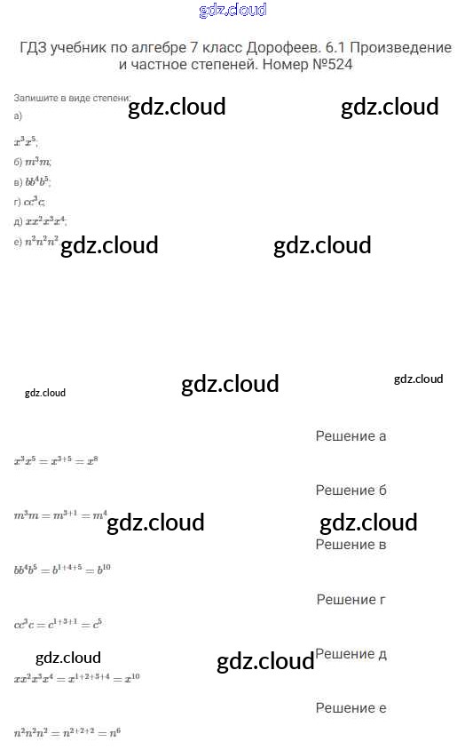 Ответ на задание 524 Учебник Алгебра за 7 (седьмой) класс Дорофеев, Суворова, Бунимович Академический школьный учебник 2020