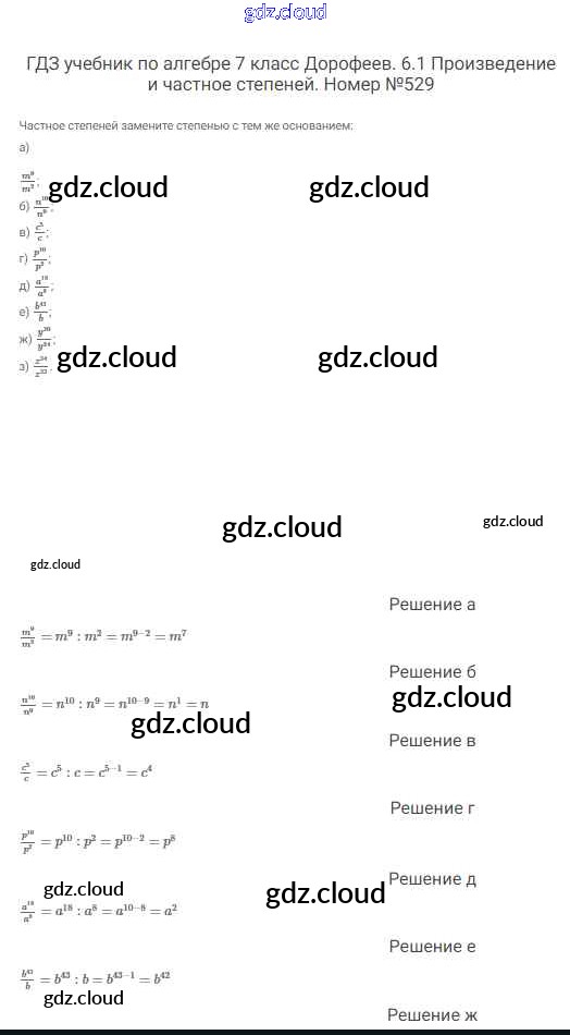 Ответ на задание 529 Учебник Алгебра  за 7 (седьмой) класс Дорофеев, Суворова, Бунимович Академический школьный учебник  2020