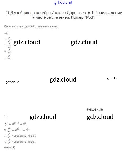 Ответ на задание 531 Учебник Алгебра  за 7 (седьмой) класс Дорофеев, Суворова, Бунимович Академический школьный учебник  2020