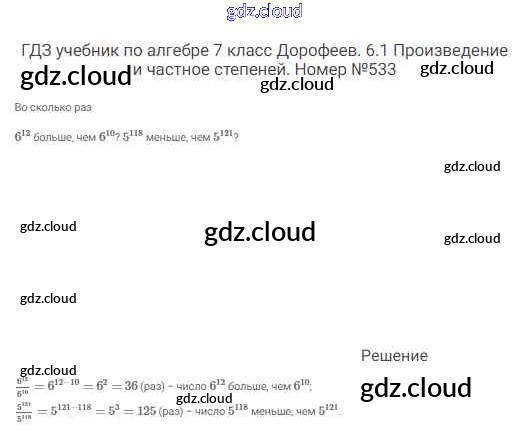 Ответ на задание 533 Учебник Алгебра за 7 (седьмой) класс Дорофеев, Суворова, Бунимович Академический школьный учебник 2020