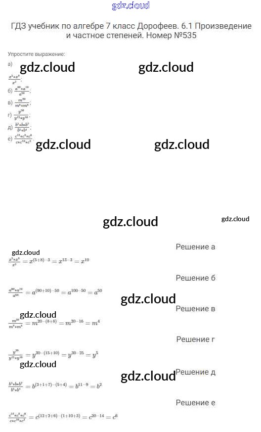 Ответ на задание 535 Учебник Алгебра  за 7 (седьмой) класс Дорофеев, Суворова, Бунимович Академический школьный учебник  2020