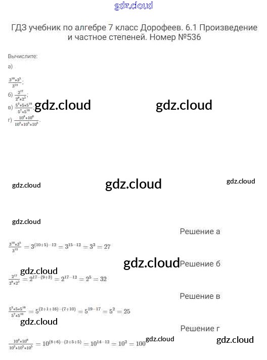 Ответ на задание 536 Учебник Алгебра  за 7 (седьмой) класс Дорофеев, Суворова, Бунимович Академический школьный учебник  2020