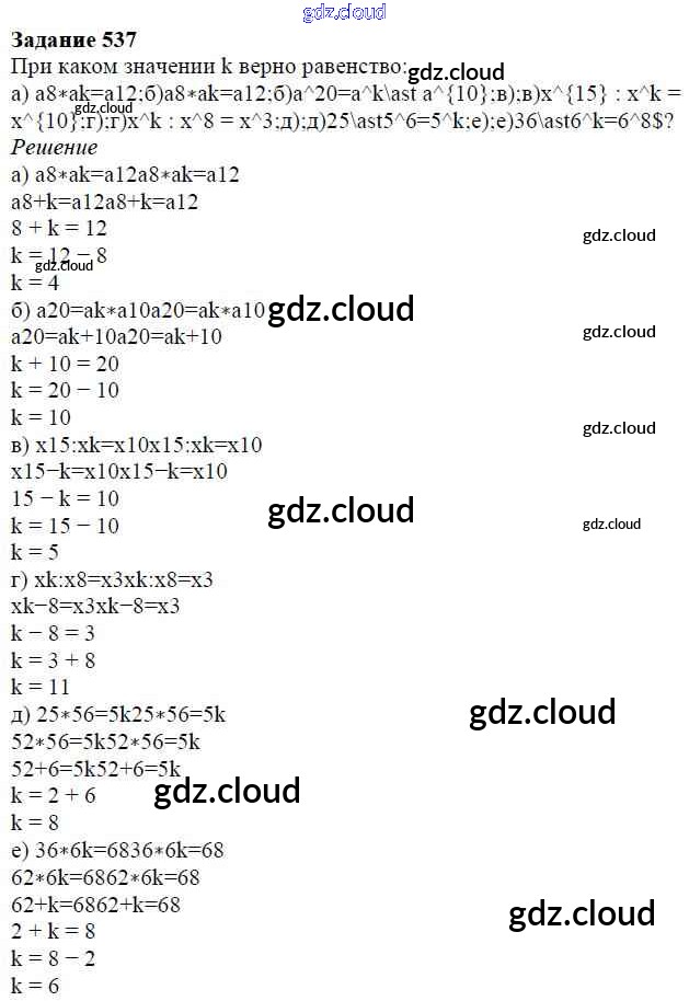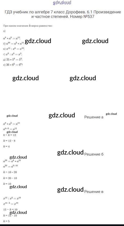 Ответ на задание 537 Учебник Алгебра  за 7 (седьмой) класс Дорофеев, Суворова, Бунимович Академический школьный учебник  2020