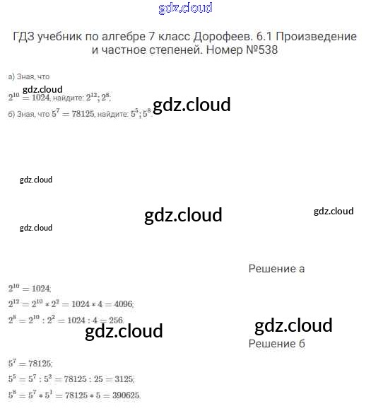 Ответ на задание 538 Учебник Алгебра  за 7 (седьмой) класс Дорофеев, Суворова, Бунимович Академический школьный учебник  2020