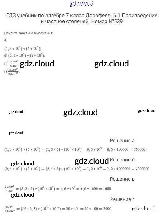 Ответ на задание 539 Учебник Алгебра  за 7 (седьмой) класс Дорофеев, Суворова, Бунимович Академический школьный учебник  2020