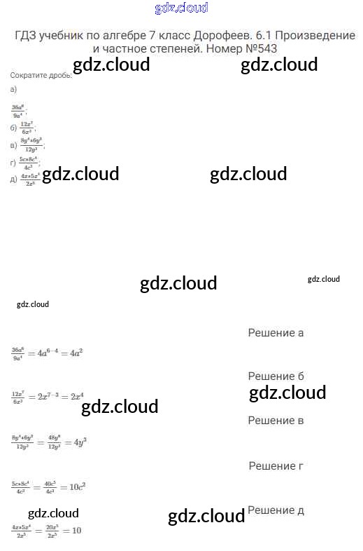 Ответ на задание 543 Учебник Алгебра за 7 (седьмой) класс Дорофеев, Суворова, Бунимович Академический школьный учебник 2020