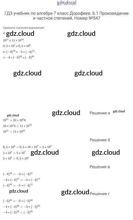 Ответ на задание 547 Учебник Алгебра  за 7 (седьмой) класс Дорофеев, Суворова, Бунимович Академический школьный учебник  2020