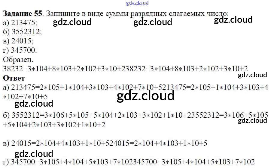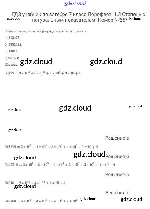 Ответ на задание 55 Учебник Алгебра  за 7 (седьмой) класс Дорофеев, Суворова, Бунимович Академический школьный учебник  2020