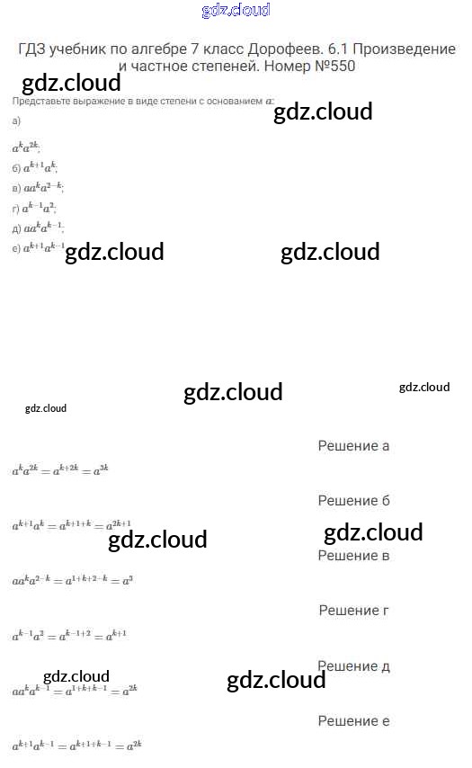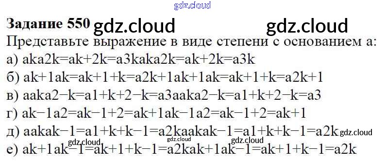 Ответ на задание 550 Учебник Алгебра  за 7 (седьмой) класс Дорофеев, Суворова, Бунимович Академический школьный учебник  2020