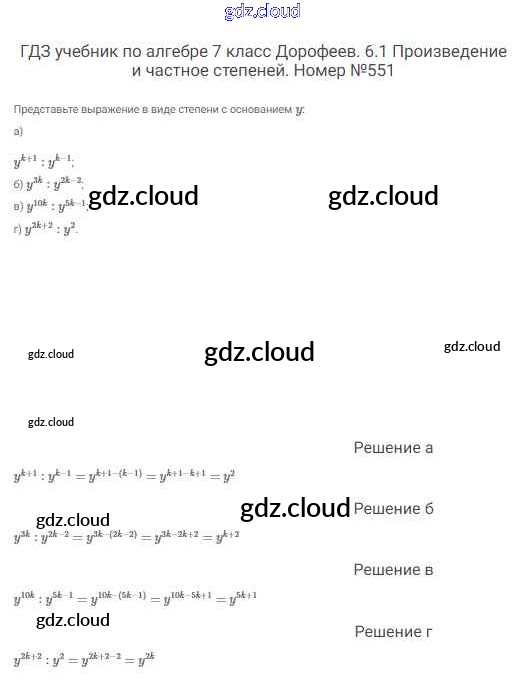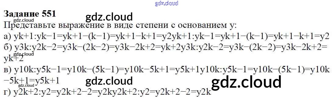 Ответ на задание 551 Учебник Алгебра  за 7 (седьмой) класс Дорофеев, Суворова, Бунимович Академический школьный учебник  2020