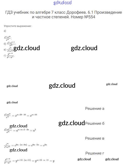 Ответ на задание 554 Учебник Алгебра  за 7 (седьмой) класс Дорофеев, Суворова, Бунимович Академический школьный учебник  2020