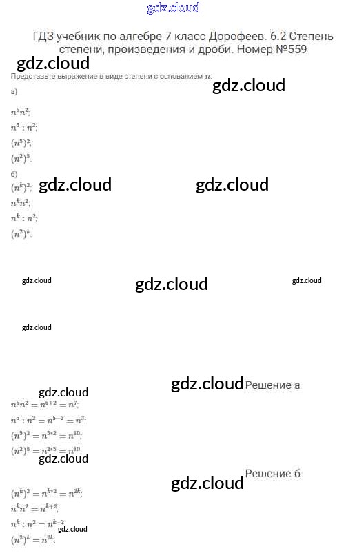 Ответ на задание 559 Учебник Алгебра  за 7 (седьмой) класс Дорофеев, Суворова, Бунимович Академический школьный учебник  2020
