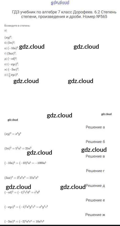 Ответ на задание 565 Учебник Алгебра за 7 (седьмой) класс Дорофеев, Суворова, Бунимович Академический школьный учебник 2020