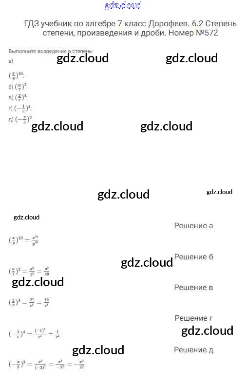 Ответ на задание 572 Учебник Алгебра  за 7 (седьмой) класс Дорофеев, Суворова, Бунимович Академический школьный учебник  2020