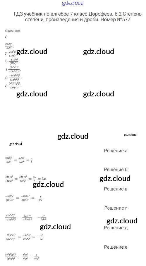Ответ на задание 577 Учебник Алгебра  за 7 (седьмой) класс Дорофеев, Суворова, Бунимович Академический школьный учебник  2020