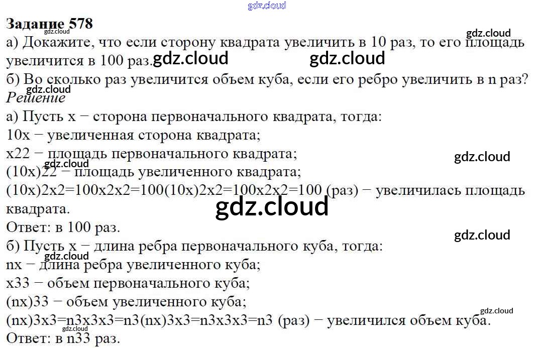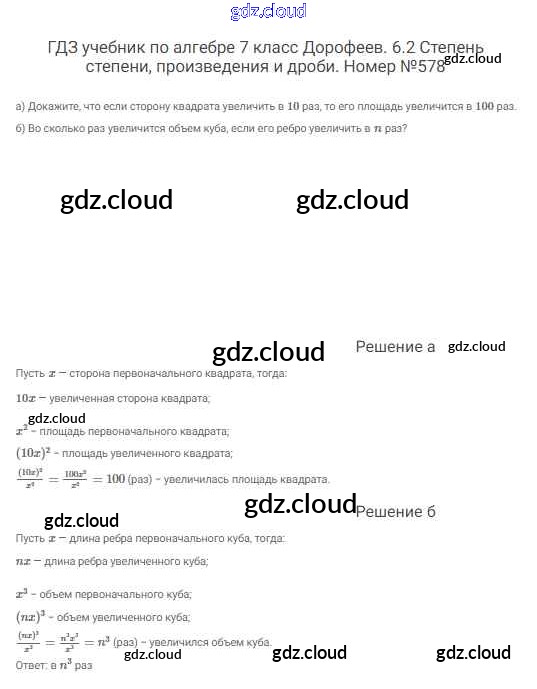 Ответ на задание 578 Учебник Алгебра за 7 (седьмой) класс Дорофеев, Суворова, Бунимович Академический школьный учебник 2020